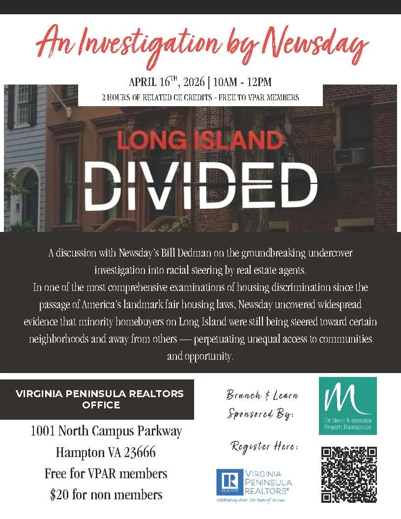 Have you submitted your required Code of Ethics & Fair Housing Certificates to the Virginia Peninsula REALTORS® office? Click here for more information.